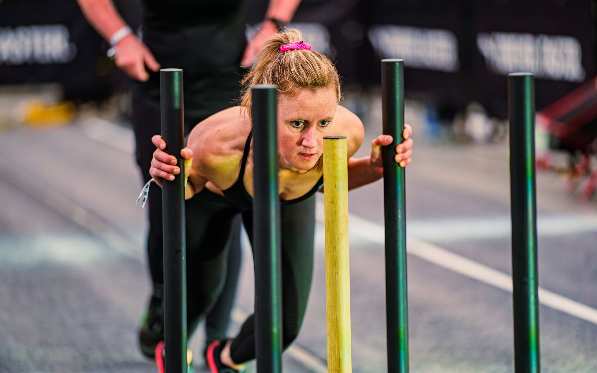 . De training bestaat uit onderdelen als Ski-Erg (1000m) voor conditie en core stability, Sled Push (50m, 152kg) en Sled Pull (50m, 152kg) voor pure kracht in benen, rug en armen, en Burpee Broad Jumps (80m) om explosiviteit en uithoudingsvermogen te combineren. Op de roeimachine (1000m) bouw je kracht en cardiovasculaire fitheid op, terwijl de Kettlebell Walk (200m) je grip en core versterkt. Met Sandbag Lunges (100m) train je balans en stabiliteit en de afsluitende Wall Balls (100x) zorgen voor kracht, controle en een flinke cardio-uitdaging.